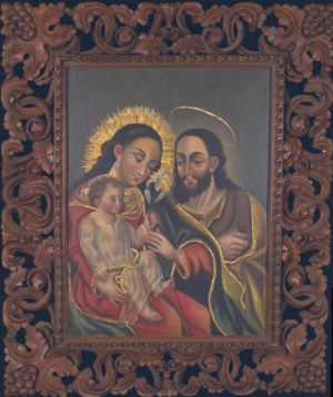 Title: Holy Family Artist: Unknown Median: Oil on Canvas Size: 22.5in x 29.5in Dated: 1832 Frame by: Louis Mideros Size: 37in x 43.5in