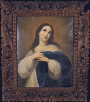 Title: Madonna Artist: Unknown Median: Oil on Canvas Size: 23.5in x 29.5in Frame by: Louis Mideros Size: 37in x 42.5in